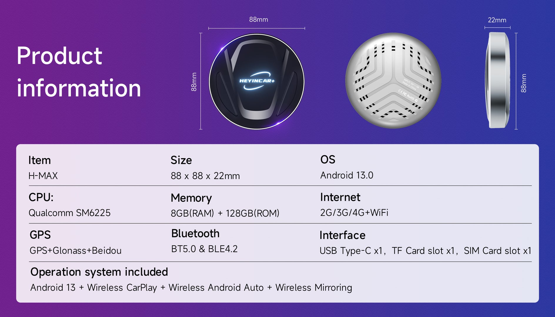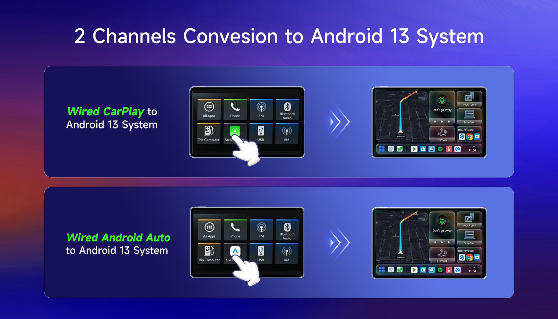 Wireless CarPlay & Android Auto: Say goodbye to tangled wires. This Android AI Box wirelessly converts your car's wired CarPlay and Android Auto system, enabling seamless connectivity and enhanced user experience.